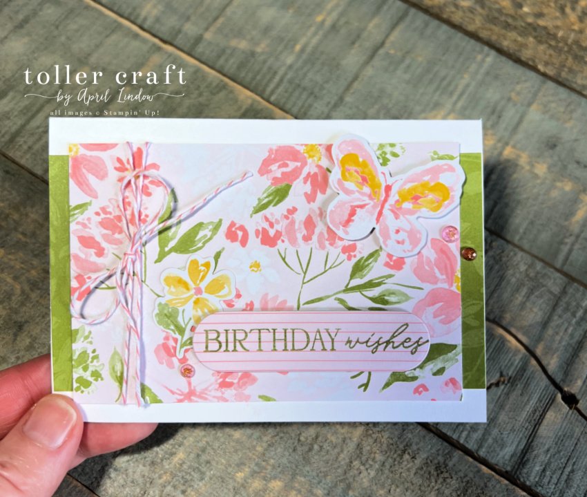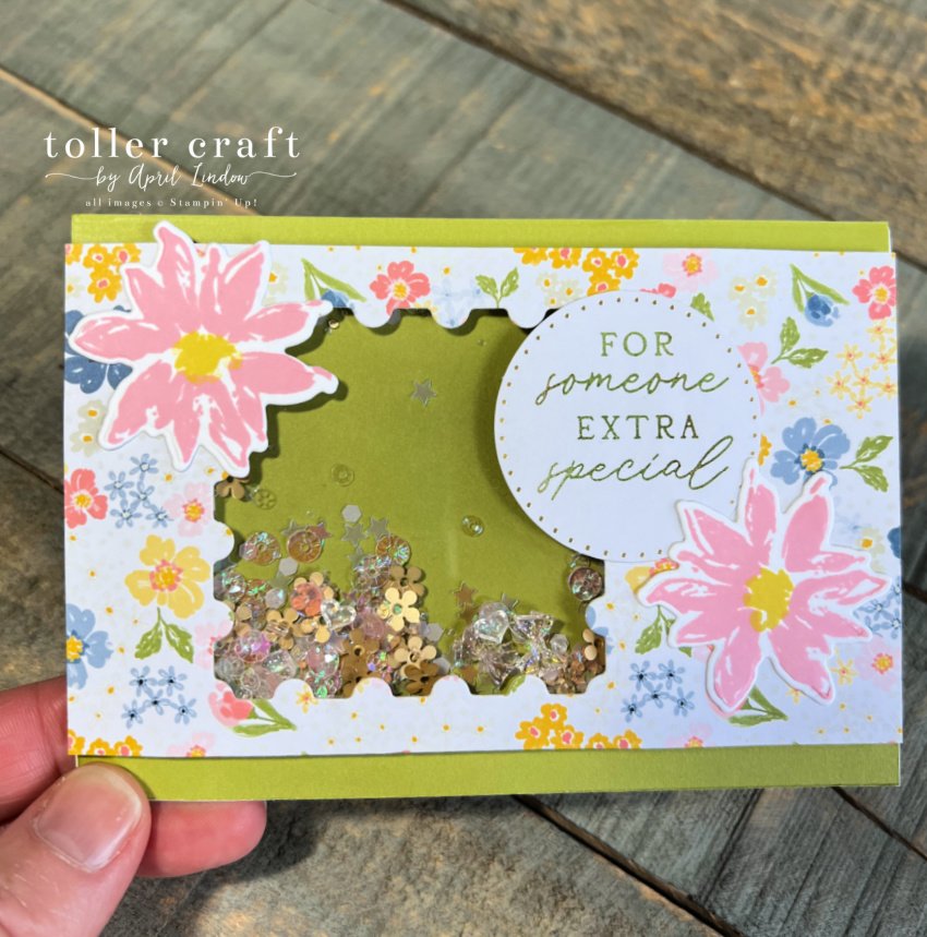 I finally got a chance to play with all of the supplies that were included in the 12 days of crafting advent calendar. It was especially fun since I did it with my mom. I really like how all of the supplies in it are perfect to use all year and aren’t holiday oriented. Right now this is on sale for $79.20. I think this is a good value since it includes; a stamp set, patterned papers, gold liquid, ephemera, shaker elements, embellishments, stickers, dies, 2 rolls of twine and masks! I used my calendar supplies with Old Olive and Flirty Flamingo 2 tone card stock and the basic white notecards & envelopes.